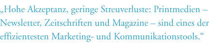 Kunden, Partner und Interessenten interessieren sich nicht nur für die Dienstleistungen und Produkte, sondern möchten auch über die Unternehmen Bescheid wissen. Durch den regelmäßigen Dialog fördern Printmedien die Vertrauensbasis und tragen damit zur Kundenbindung bei. Dies gilt in besonderem Maße auch für die Mitarbeiter eines Unternehmens – und somit auch für firmeninterne Kommunikationsmittel.